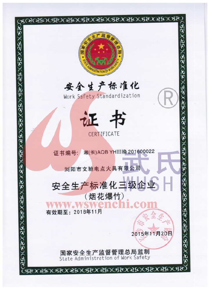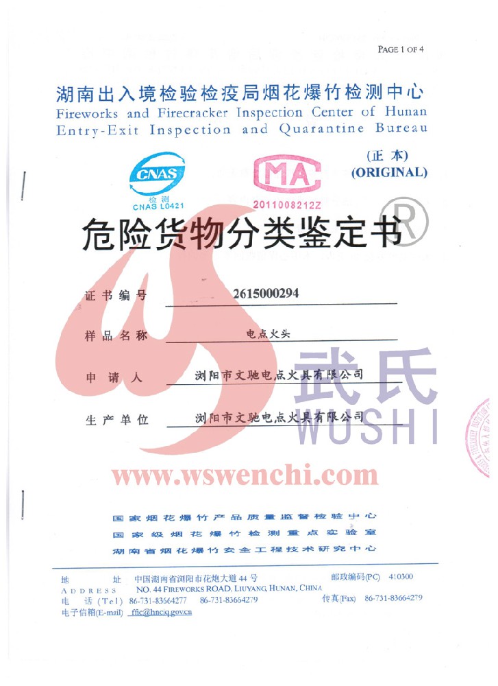 瀏陽市文馳電點火具有限公司(原培文電子點火器材廠),創(chuàng)建于1998年,是一家專業(yè)從事研制銷售電子點火產(chǎn)品的民營科技企業(yè),是我國第1枚煙花用電點火頭生產(chǎn)者,是《煙花爆竹電點火頭國標》牽頭起草單位。公司位于中國“煙花之鄉(xiāng)”湖南省瀏陽市,地理位置優(yōu)越,交通便利。 我公司研制的對象是用電能引燃火藥、做機械功等預定功能的一次性使用的元件或裝置,包括電點火頭(英文名ElectricMatch or Electric Igniter,中文俗稱“電火柴”或“電發(fā)火頭”)、電點火管和延期電點火管;我們估且在以后的產(chǎn)品技術欄中將我們研究的產(chǎn)品統(tǒng)稱為電點火具,將電點火器看成是用于提供和控制供給電點火元件點火的電能器材;我們研究的電點火橋路有橋絲式、無橋絲···